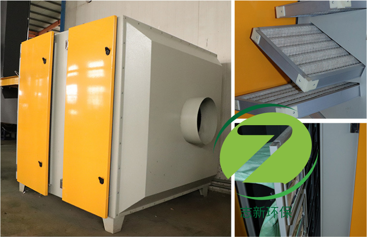 初效过滤+布袋过滤,有效的过滤10微米以上的颗粒物防止活性炭堵塞。