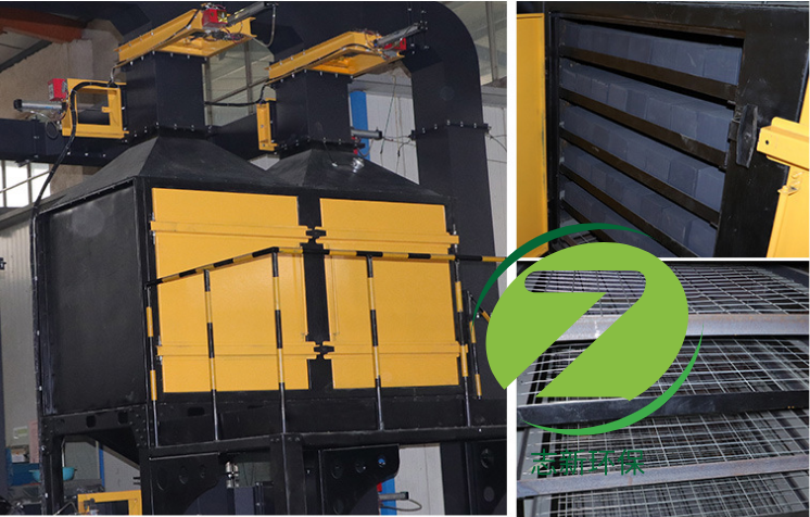 分层抽屉式排列高碘值活性炭有效的吸附废气中的有机物质。风阻小,净化效率高,吸附效果强。
