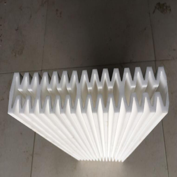 塑烧板的所占空间仅是布袋除尘器的1/3-1/6,并且可以叠加设计缩小占地面积。过滤面为波浪形设计,单块板过滤面积是相同体积滤袋的2-3倍。